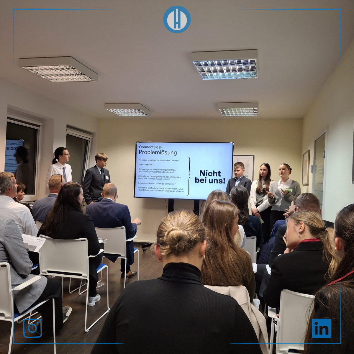 For the second time this year, we hosted the Management Information Game (MIG). Sixteen students from Scharnhorst Gymnasium and Robert Bosch Gesamtschule spent a week with us at the company, stepping into the shoes of company executives. In addition to inspiring lectures and exciting insights into business processes and procedures, the presentation evening on Wednesday was another highlight. There was a wide range of smart desks with top-class features to see and experience, delicious catering and high-profile guests from the business world and schools. The week concluded with the investor conference and an obligatory tour of the company.